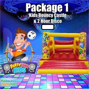 This package includes a 12ft x 12ft castle and a disco for 2 hours. When filling out the booking form remember to add your chosen castle to your booking!